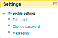 - Settings-block: use the Settings-block on the right of your screen for updating settings, **IMPORTANT the links in the settings-block are context-sensitive which means the links will change depending on what you are currently doing in the site.