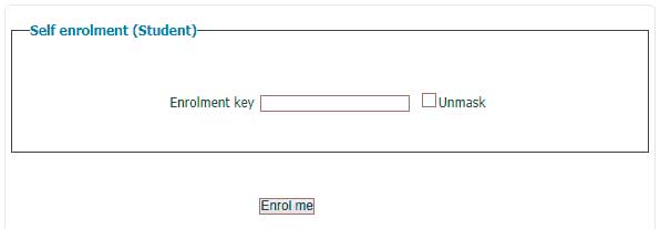 - Enrollment Key: Enter the Enrollment Key that was provided by your Department Coordinator, click on 'Enrol me'. You'll be sent to the course home page. Your course will show up in the Navigation-block right of your screen under 'My Courses'.
